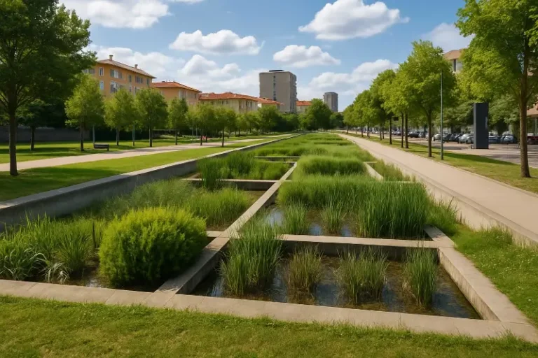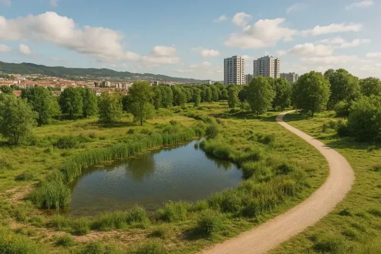 Rua verde e conforto térmico em Teo responde a desafios típicos de áreas urbanas em Teo, na Galiza, caracterizadas por ilhas de calor, escoamento superficial elevado e défice de áreas verdes. A intervenção integra soluções baseadas na natureza —como jardins de chuva, arborização de alinhamento, pavimentos permeáveis e zonas de estadia sombreadas— para melhorar a drenagem sustentável, reduzir a temperatura do espaço público e reforçar a conectividade ecológica. A atuação procura aumentar o conforto climático e a resiliência urbana, favorecendo a qualidade ambiental e o bem‑estar da população com manutenção adequada e uso de espécies autóctones.